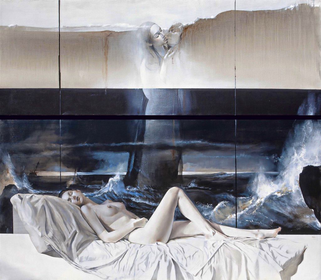 Redazione- 6° Senso Art Gallery è lieta d’invitarvi all'inaugurazione della mostra Melanconia dell’Immagine dell’artista Gigino Falconi, venerdì 28 Febbraio alle ore 18.30 in Via Margutta 43, Roma. Le opere in mostra detengono una risonante potenza narrativa, sono realizzate con una tavolozza chiara ed eterea e mettono in risalto atmosfere oniriche. Il mondo dei simboli e dei desideri acquistano consistenza, diventano materia vivente. Al centro delle sue composizioni prevale la donna in tutto il suo candore. Le donne dai corpi angelici, candidi e mitizzati vengono posizionate all’interno di dimensioni irreali, levitano su alberi, su lenzuola disfatte, su divani scomposti. Di queste donne idealizzate è possibile percepirne il loro inconscio, i desideri proibiti, i ricordi dolorosi, ottenuti dall’artista sia attraverso paesaggi tempestosi sia attraverso la presenza di altre figure posizionate su diversi piani compositivi, con corpi raffigurati non nella loro interezza; una volontà precisa che mira a sostenere l’indefinito dei sogni, le memorie atemporali. Le immagini sono costituite da colori scuri, una costante inevitabile nei quadri dell’artista. La percezione di un raffreddamento delle emozioni visive è evidente, ma questa non è una nota negativa anzi l’artista riesce a penetrare in luoghi profondi e sconosciuti dell’anima. Le forme e i gesti sono sospesi, fuori dal tempo; con tutta la maestria della mano del pittore si assiste non solo ad un’elegia del mito e del simbolo ma, ad estasi nostalgiche, frammenti di ricordi, realtà perturbate. Quella di Gigino Falconi non è una banale fuga della realtà o una sublimazione del dolore; le atmosfere lunari non sono estranianti anzi hanno note malinconiche, partecipano al dolore non lo respingono, lo accolgono, senza essere del tutto coinvolte, le figure femminili richiamano il poetico e lo struggente nel contempo. Il mistero come la poesia hanno un ruolo centrale.