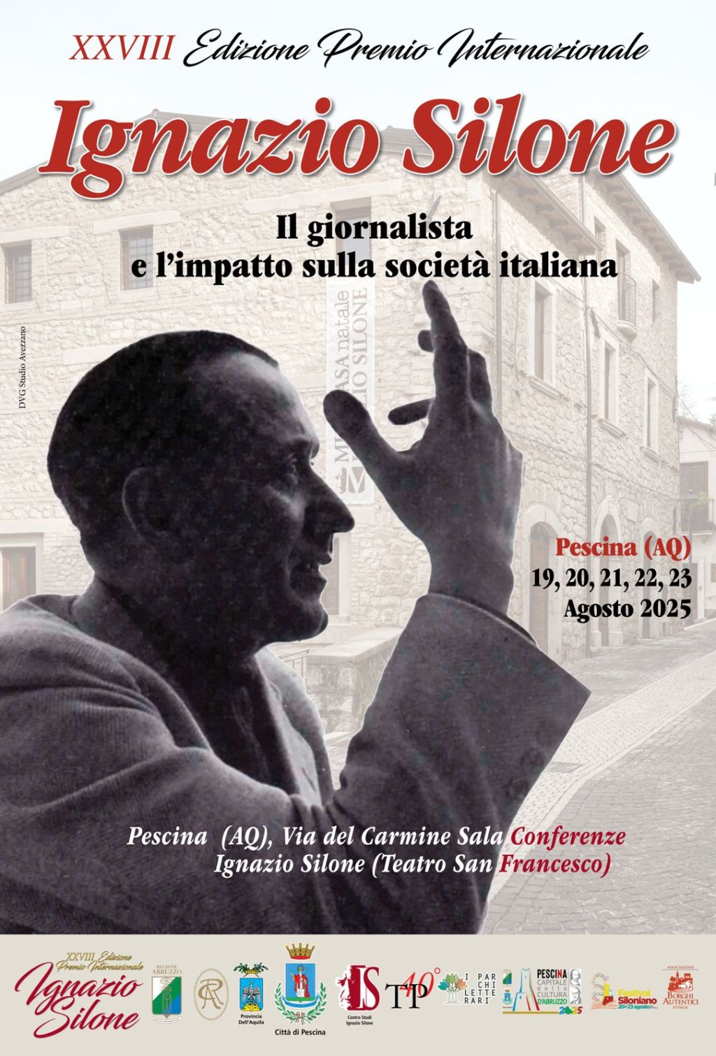 Redazione- A Pescina (Aq), Capitale della Cultura d'Abruzzo 2025, dal 19 al 22 agosto torna il Premio Internazionale Ignazio Silone, giunto alla sua XXVIII edizione. L'evento, promosso dall’Amministrazione comunale di Pescina, continua a onorare la memoria di uno dei più grandi intellettuali del Novecento.