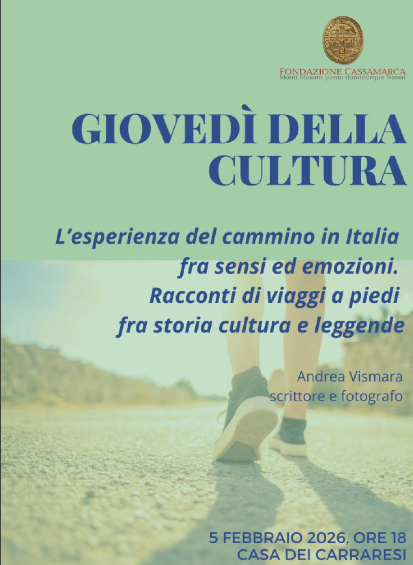 GIOVEDÌ DELLA CULTURA: IL 5 FEBBRAIO SI PARLA DI RACCONTI DI VIAGGIO A PIEDI TRA STORIA, CULTURA E LEGGENDE