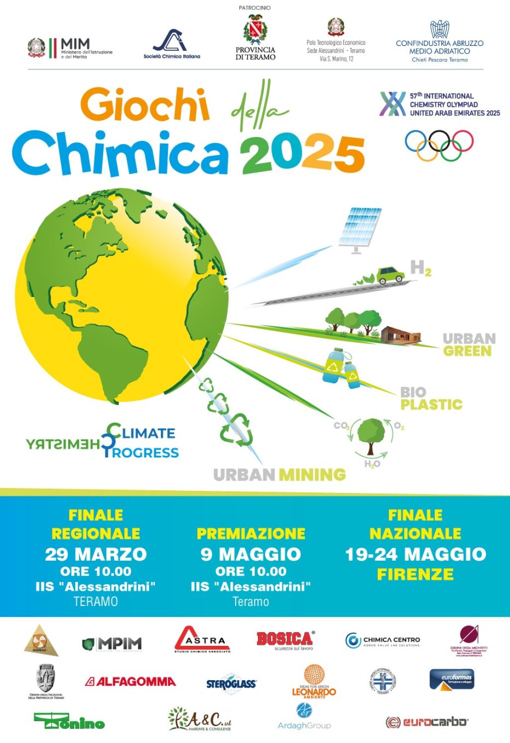 Redazione-  Sabato 29 marzo 2025, alle ore 10:30, presso la palestra della sede dell’Istituto di Istruzione Superiore "Alessandrini-Marino" di Teramo, in via San Marino n. 12, si terrà in simultanea nazionale la Finale Regionale dei Giochi della Chimica 2025. Saranno presenti, tra gli altri, il prof. Paolo De Berardis – responsabile regionale dei Giochi e il prof. Marcello Crucianelli – presidente della Società Chimica Italiana sez. Abruzzo.