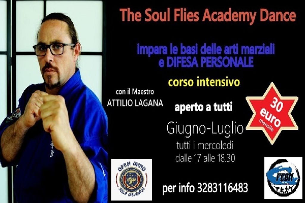 Redazione- Presso la THE SOUL FLIES ACCADEMY DANCE di Carsoli , nei mesi di Giugno e Luglio partono i corsi intensivi per conoscere le ARTI MARZIALI e la DIFESA PERSONALE. con il Maestro ATTILIO LAGANA.I corsi sono aperti a tutti, ambo sessi, tutti i Mercoledi dalle 17 alle 18.30, dai 10 anni in su .
