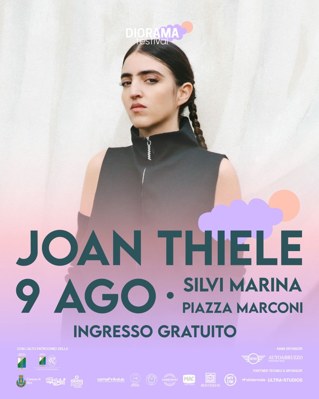 “Joan Thiele è un’artista che va oltre i generi, oltre le mode – dichiara Paolo Cicalini, ideatore e direttore artistico di Diorama Festival. - Averla con noi in questa edizione di Diorama, proprio qui a Silvi, davanti al mare, è un privilegio enorme. Joan è reduce da un Sanremo memorabile, e portare la sua arte in Abruzzo significa continuare a credere che i linguaggi del presente vadano coltivati in luoghi autentici. Sarà una serata intensa, viva, indimenticabile”.
