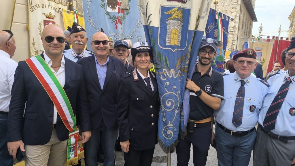 L’emozionante ritorno è stato segnato dalla presenza del gonfalone comunale portato con fierezza dalla Polizia Locale, affiancata dalla Comandante, da una rappresentanza dei Carabinieri in congedo e dall’Associazione Nazionale Paracadutisti.