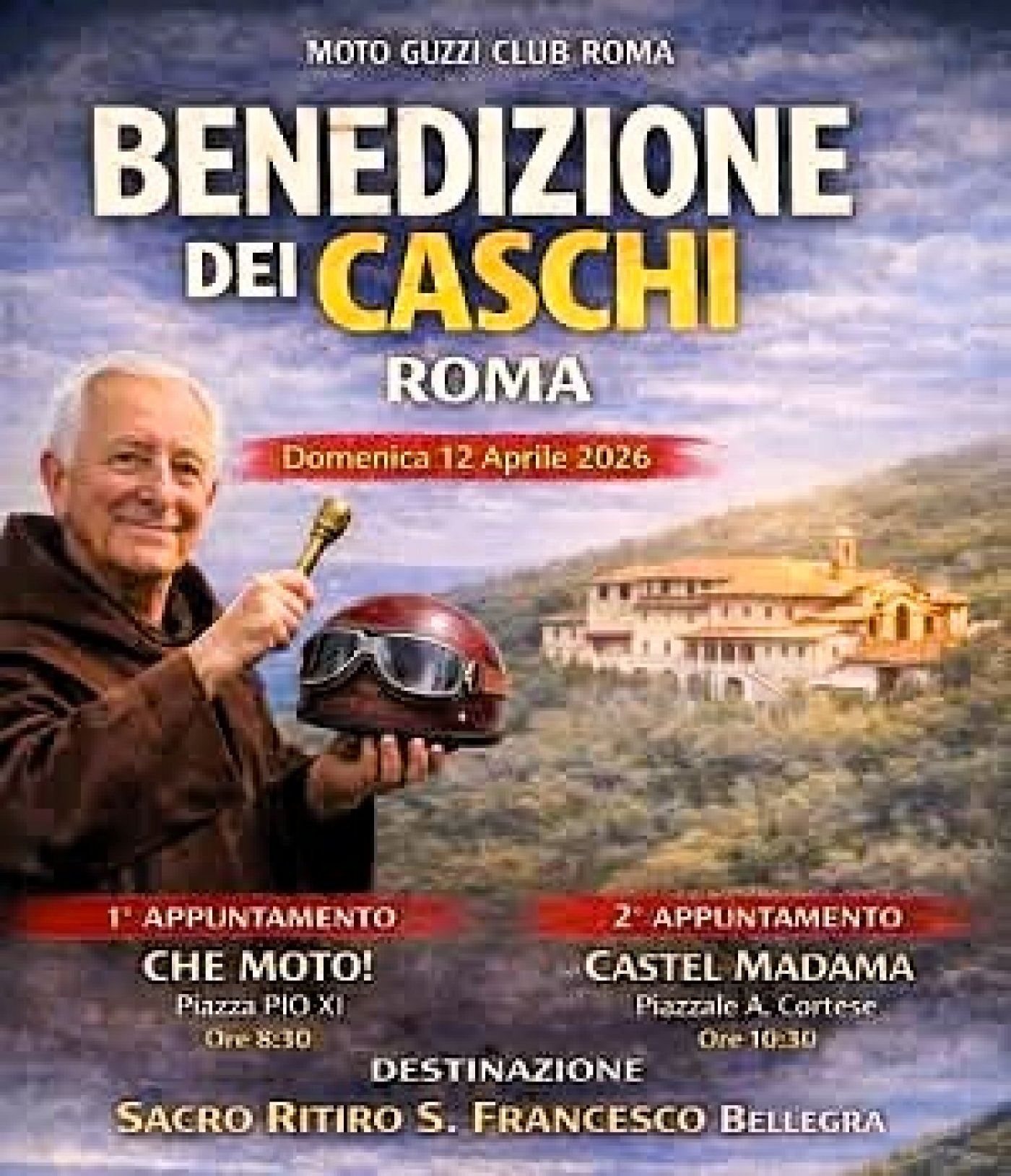 Redazione- Il prossimo 12 aprile 2026 segnerà il debutto di una nuova tradizione per i centauri del Lazio: la manifestazione "Benedizione dei Caschi – da Roma a Bellegra". Ideato dal Moto Guzzi Club Roma, l’appuntamento nasce con l’ambizione di trasformarsi in una consuetudine annuale capace di richiamare appassionati da tutto il territorio.
