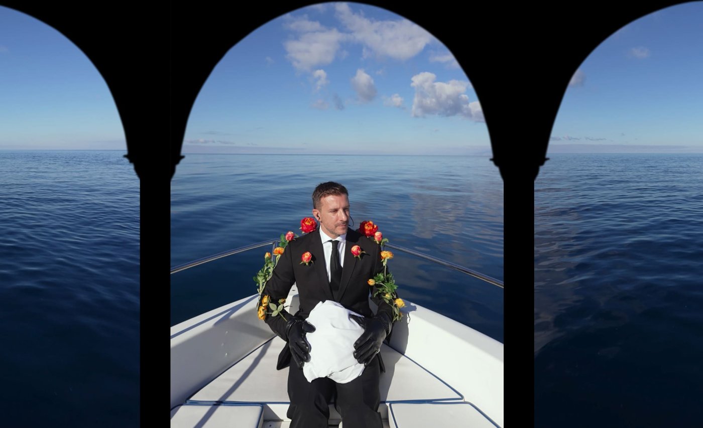 Un’opera d’arte site specific a cura di Serena Tabacchi - nata come performance in presa diretta - che nelle immagini di un attraversamento in mare aperto, chiama a raccolta e interroga le coscienze. Un’esperienza sensoriale immersiva che coinvolge lo spettatore non come osservatore esterno, ma come presenza attiva all’interno di uno spazio di ascolto e riflessione, dove l’arte non si limita a rappresentare, ma chiede una presa di posizione: una processione laica in mare, in cui cinque imbarcazioni avanzano insieme come un unico corpo, fino a un gesto finale di forte impatto simbolico.