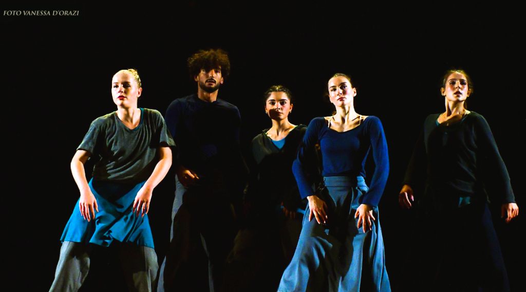 La coreografia ARCA – ARCHÉ di Debora Renzi, vincitrice della call, nasce da una riflessione sul corpo come contenitore di memoria e materia fluida. In scena, l’acqua non è elemento ma presenza viva, attraversamento di un tempo invisibile che risveglia tracce, residui, risonanze archetipiche. Il corpo diventa vaso, eco di un’origine che si trasforma e ritorna, mentre ogni gesto si fa onda, scorrimento, passaggio. Una creazione di forte densità simbolica, in cui la danza si fa rito e rigenerazione. Hanno interpretato il lavoro Martina Valente, Angelica Maltese, Gabriela Martucci, Alessia Amadio (Mandala Dance Company) e Oussema Khlifii (MATRIX PRO).
