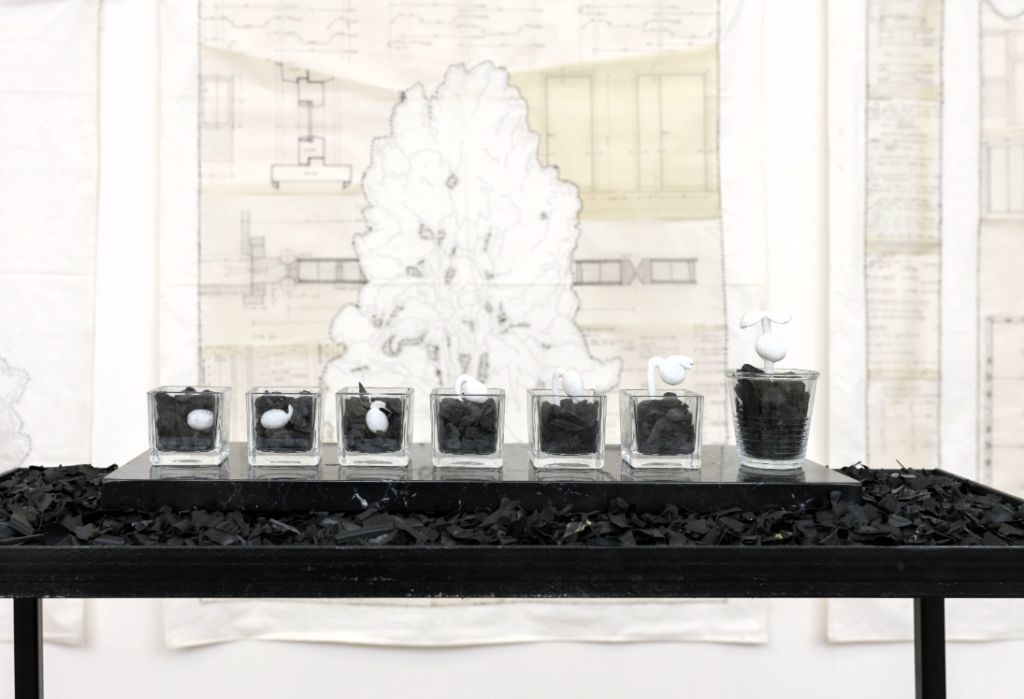 In un’epoca in cui l’artificio umano sta prevaricando sulla sfera vegetale e animale, l’artista Silvia Scaringella, partendo dalla riflessione di Spinoza Deus Sive Naturae (Dio ossia la natura), ha sentito l’esigenza di esplorare le correlazioni mimetiche ancora esistenti tra i comportamenti dell'umana collettività e gli esseri naturali, il rapporto albero-casa ovvero la casa ancestrale e il bisogno di costruzione umano, la relazione tra la morfologia dei fiori e lo scheletro umano, l’organizzazione societaria e, infine, l’attuale impossibile ipotesi di convivenza tra esseri appartenenti a diverse specie nello stesso spazio.