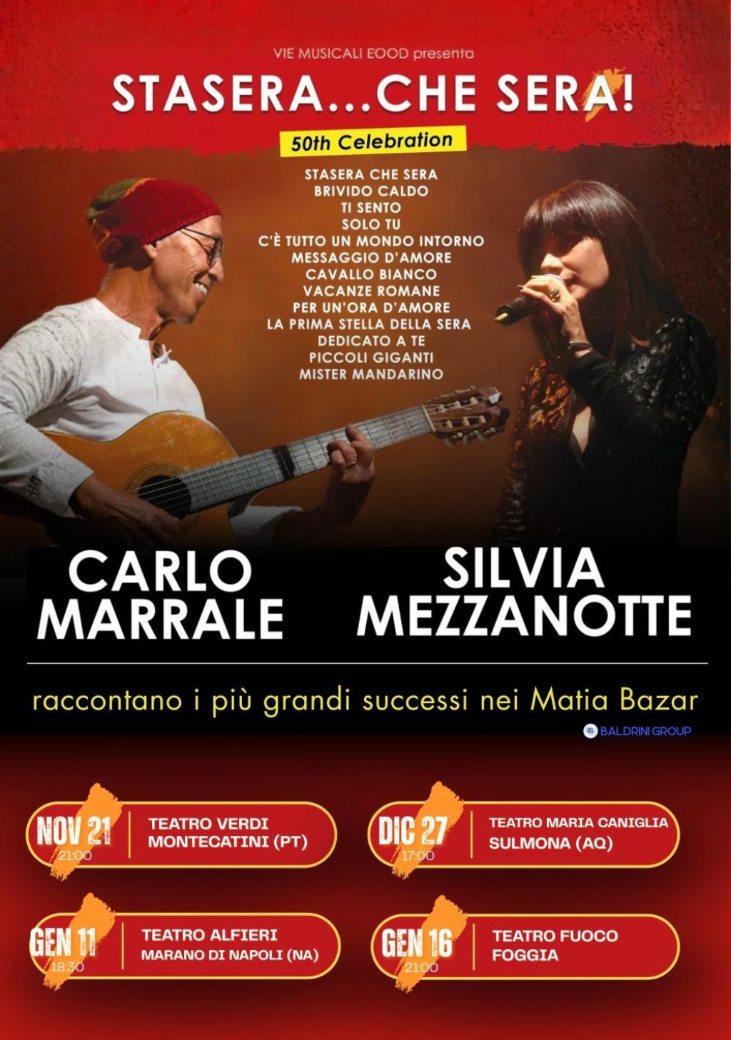 Carlo Marrale e Silvia Mezzanotte sono stati grandi protagonisti della storia dei Matia Bazar in due epoche diverse. Carlo Marrale, chitarrista cofondatore della band, è il principale autore del gruppo. A lui si devono successi internazionali come “Vacanze Romane” e “Ti sento”. Silvia Mezzanotte, straordinaria voce del gruppo negli anni Duemila, dopo aver raccolto l'eredità di Antonella Ruggiero ha vinto con la band per la seconda volta il Festival di Sanremo. Era destino che quelle due storie dovessero ricongiungersi e così dal 2019, dopo un incontro fortuito in un hotel di Firenze e dopo aver capito la grande affinità delle loro anime artistiche, Silvia Mezzanotte e Carlo Marrale hanno unito le forze e portano in giro dal vivo la storia dei Matia Bazar. I due artisti stanno attualmente lavorando a un nuovo progetto.