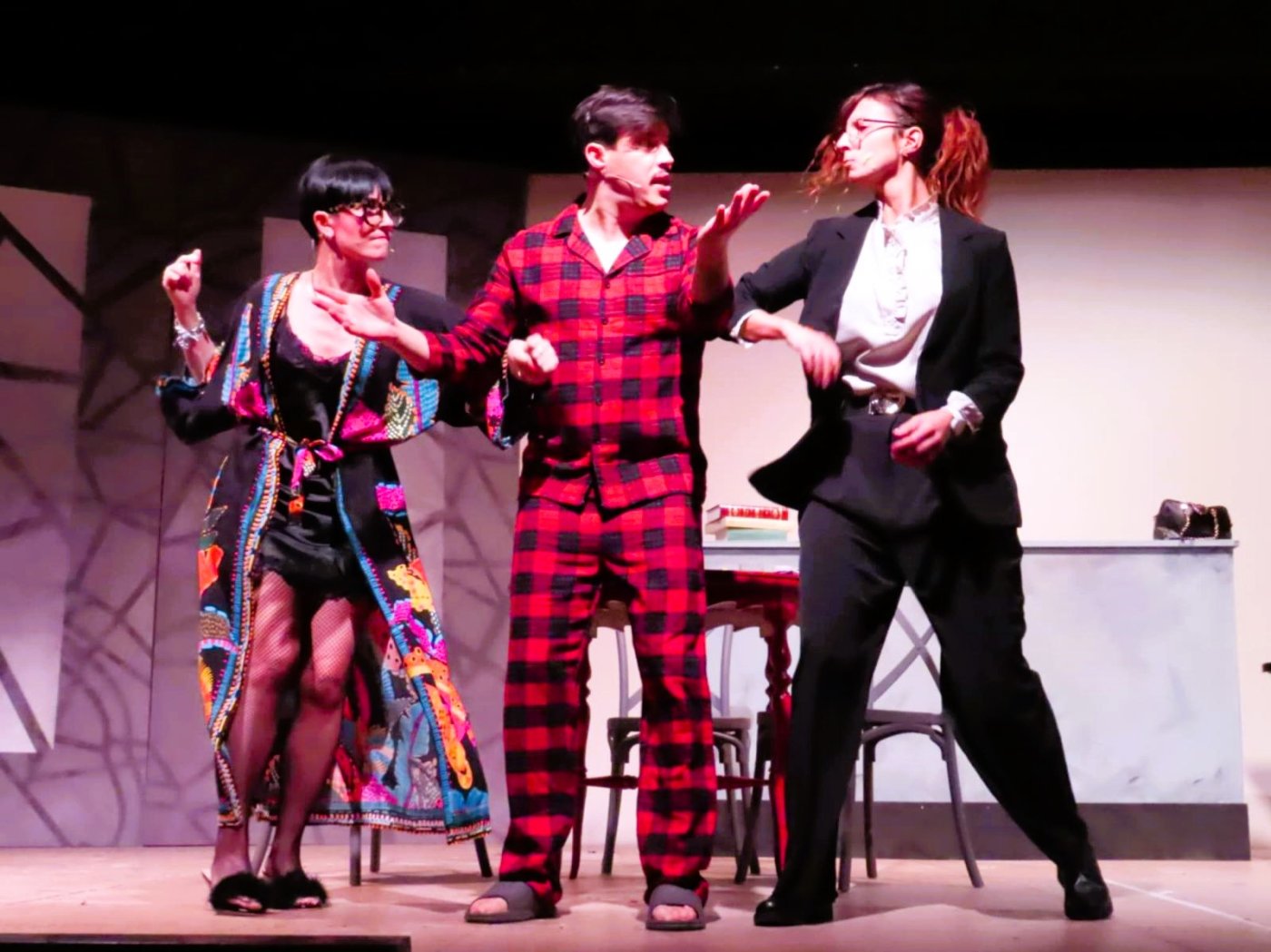 “In tre sotto il letto” è una commedia degli equivoci dal ritmo incalzante, costruita su una trama brillante e ricca di colpi di scena. Tra situazioni paradossali, bugie a catena e imprevisti che si moltiplicano scena dopo scena, lo spettacolo trascina il pubblico in un vortice di comicità irresistibile. Il meccanismo teatrale, preciso e ben orchestrato, gioca con le dinamiche di coppia e con le fragilità umane, trasformando ogni imbarazzo in occasione di risata. Ne nasce un intreccio frizzante, in cui porte che si aprono e si chiudono, presenze inattese e dialoghi serrati danno vita a una girandola di situazioni esilaranti, mantenendo alta la tensione comica fino all’epilogo.