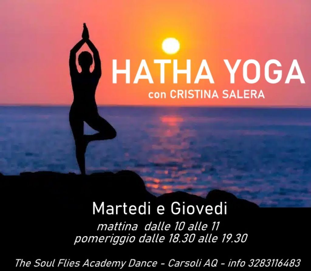 La grande esperienza nel mondo dello YOGA, ed in particolare dello HATHA, della maestra CRISTINA SALERA , sarà a disposizone di chi vuole entrare nel mondo della quiete, e dell'energia del corpo. La maestra apre un nuovo corso presso l'accademia di danza THE SOUL FLEIS ACADEMY DANCE,, il martedi ed il giovedi con doppi appuntamenti di mattina e di pomeriggio. Il corso di mattina dalle 10 alle 11, ed il corso di pomeriggio dalle 18.30 alle 19.30.