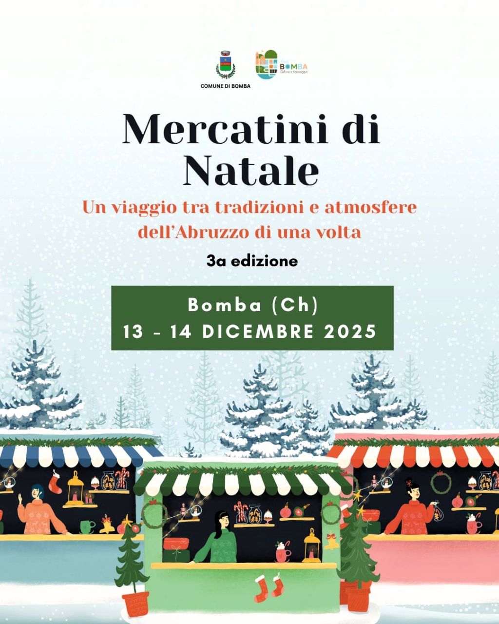 Redazione – Ricchissimo programma per la terza edizione deiMercatini di Natalea Bomba che si terrannosabato 13 e domenica 14 dicembre. Oltre quaranta gli espositori che parteciperanno all’evento organizzato dall’amministrazione comunale e che coinvolgerà quest’anno piazza G. Matteotti, il centro storico, largo Pian della Torre e via Sangritana.
