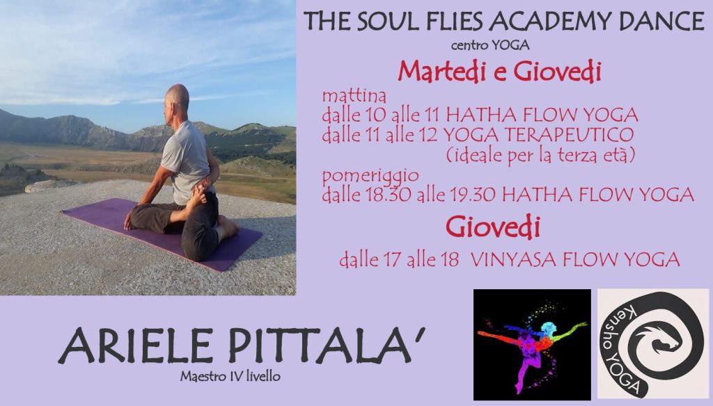 Redazione- Dopo l'accordo con il centro KENSHO YOGA, arrivano i nuovi corsi di HATHA FLOW YOGA E VINYASA FLOW YOGA, alla THE SOUL FLIES ACCADEMY DANCE di Carsoli, che diventa Centro YOga. I corsi sono diretti dal Maestro di IV livello, ARIELE PITTALA'.