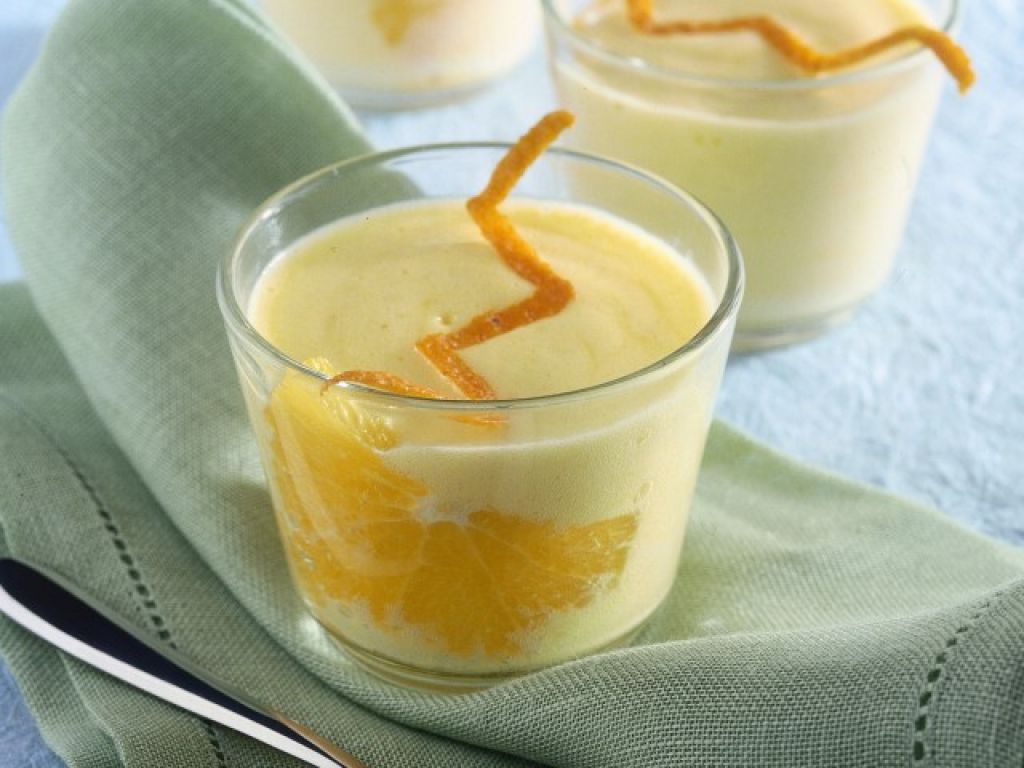 Ingredienti per 4 persone: 6 arance succose, 6 uova, 100 gr. di zucchero, 1 foglio di colla di pesce
