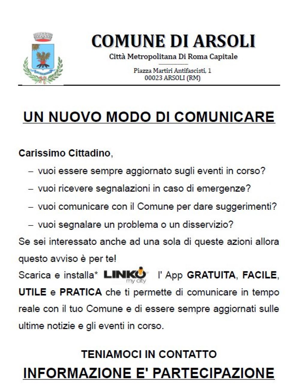 ARSOLI,L'APP LINKO:UN NUOVO MODO DI COMUNICARE