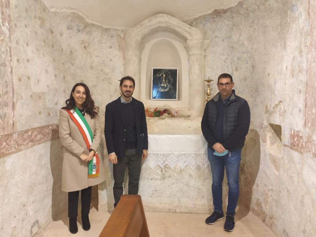 Il Sindaco Velia Nazzarro,, L'artista Emanuele Moretti e Don Roberto Il Sindaco Velia Nazzarro,, L'artista Emanuele Moretti e Don Roberto