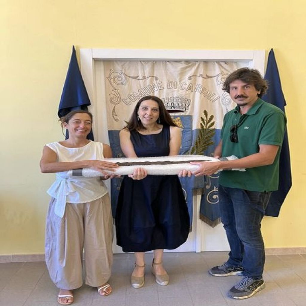 Redazione- È stata riconsegnata al Comune di Carsoli, alla presenza della Dott.ssa Francesca Romana Del Fattore, della Soprintendenza Archeologia, Belle Arti e Paesaggio delle Province di L’Aquila e Teramo, la Spada in Ferro rinvenuta durante gli scavi di Valle Mura nella tomba 17. La spada, restaurata dal Dott. Enrico Montanelli, risalente al periodo Arcaico, ovvero a circa 2600 anni fa, verrà custodita ed esposta in una teca insieme ad altri reperti archeologici riportati alla luce sempre a Valle Mura. Nei prossimi giorni si procederà quindi, sempre di concerto e sotto la direzione della Soprintendenza, ad allestire tutta la vetrina espositiva e ad inaugurare quello che rappresenta un primo importante passo verso il futuro polo museale.
