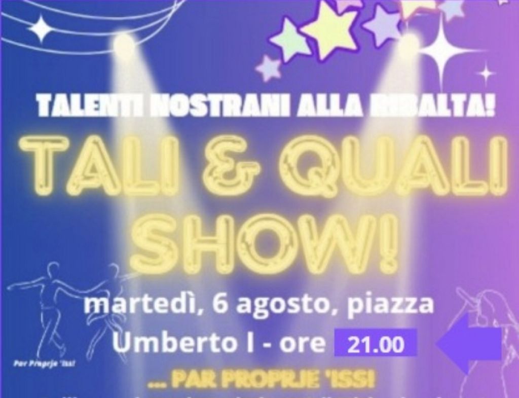 Redazione- Tutto pronto a Luco dei Marsi per "il Talent più show dell'estate!". Questa sera, in piazza Umberto I, alle 21, riflettori accesi su "Tali & Quali - Par proprije 'Iss", l'evento annoverato nella rassegna estiva a tema Vacanze luchesi che chiama a raccolta appassionati di canto e di ballo, che potranno caratterizzare la loro esibizione con richiami agli artisti autori del brano interpretato o ai generi del ballo proposto. Notevole il successo riscosso dall’iniziativa, testimoniato dall'amplissima adesione giunta da singoli e gruppi di diverse fasce d’età.