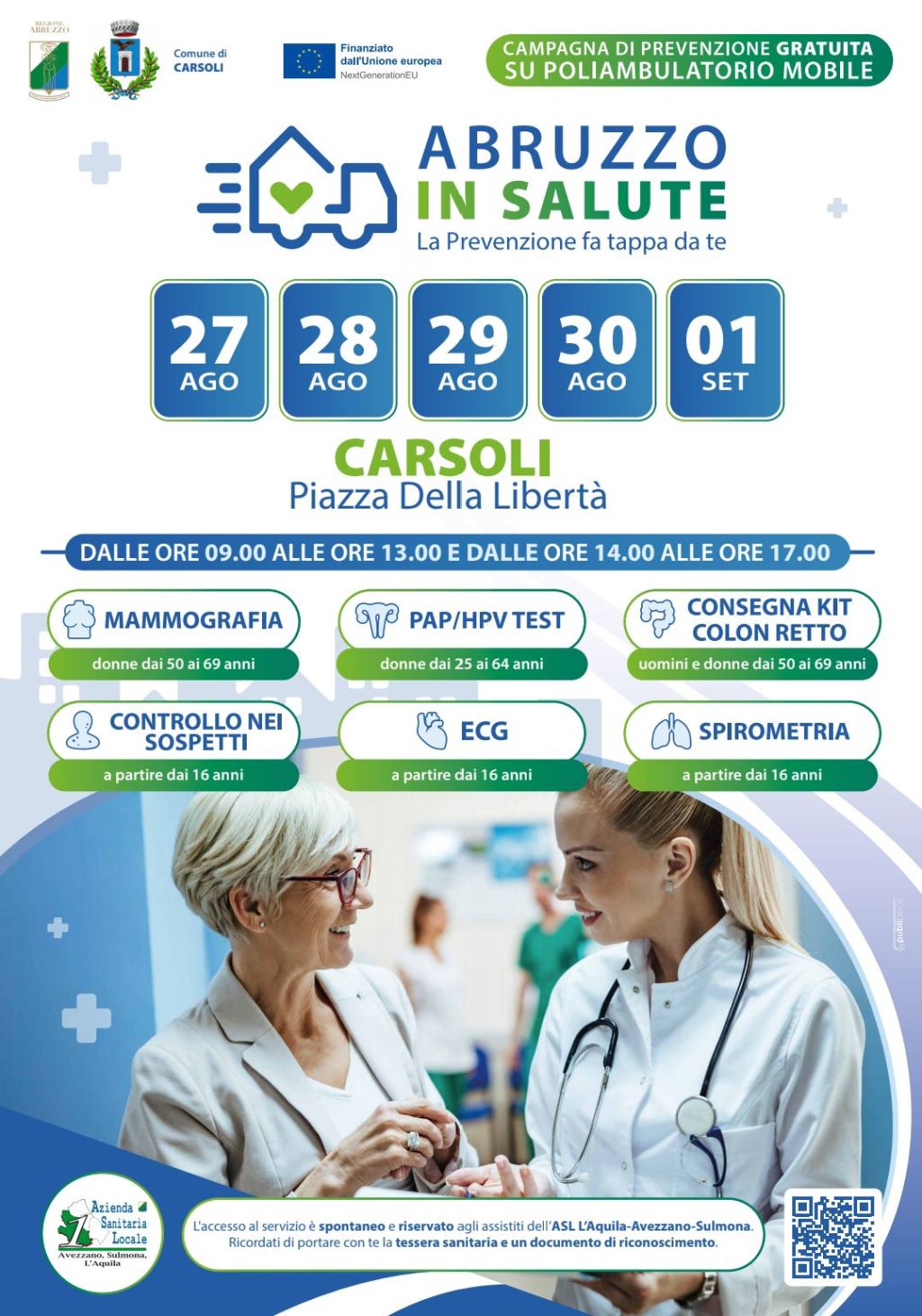 CARSOLI, CAMPAGNA DI PREVENZIONE GRATUITA SU POLIAMBULATORIO MOBILE