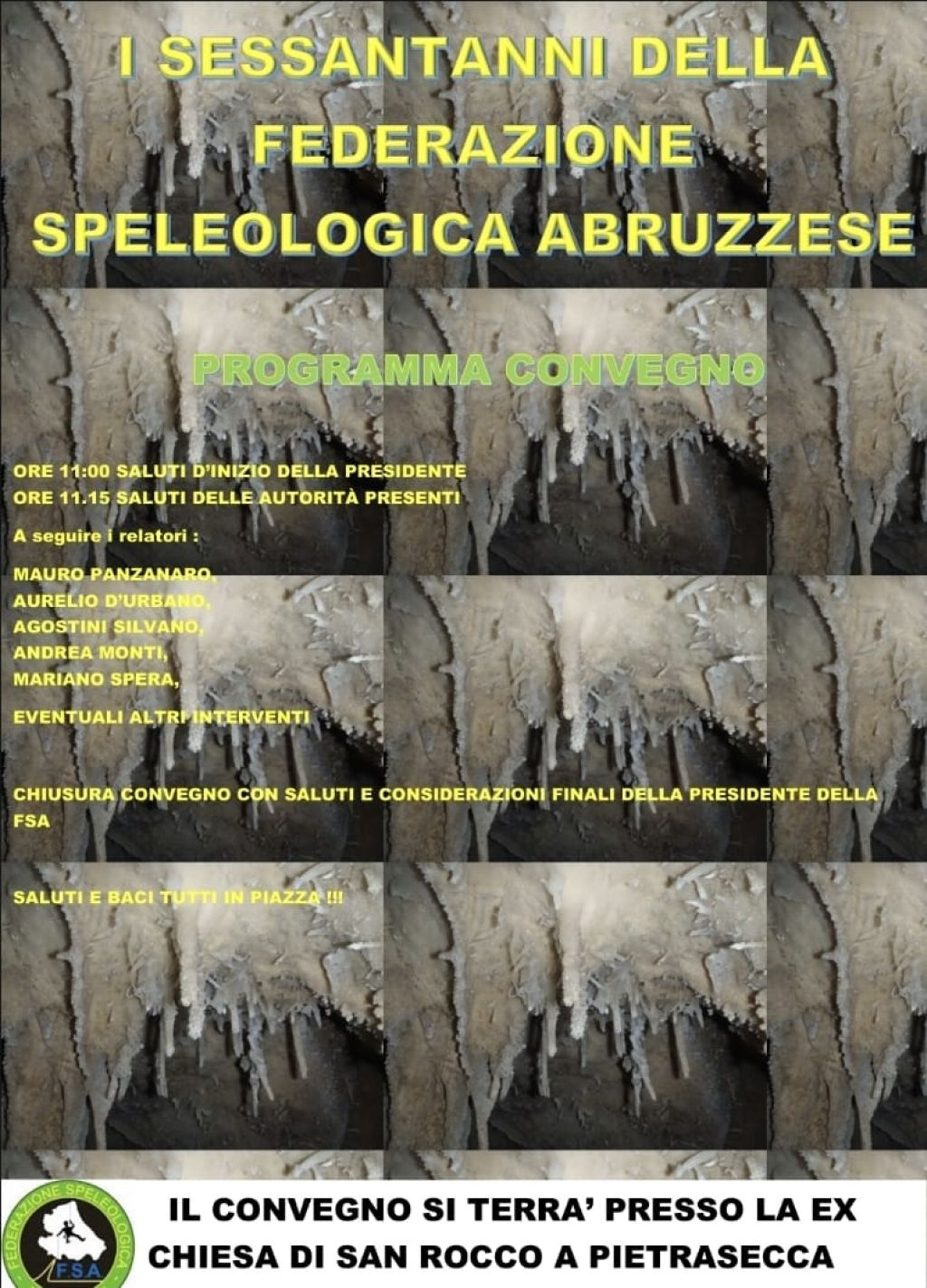 Redazione- La Federazione Speleologica Abruzzese compie 60 anni e celebra questo importante anniversario il 27 e 28 settembre a Pietrasecca , Carsoli (AQ), luogo simbolico per la storia e la vita associativa della speleologia regionale.