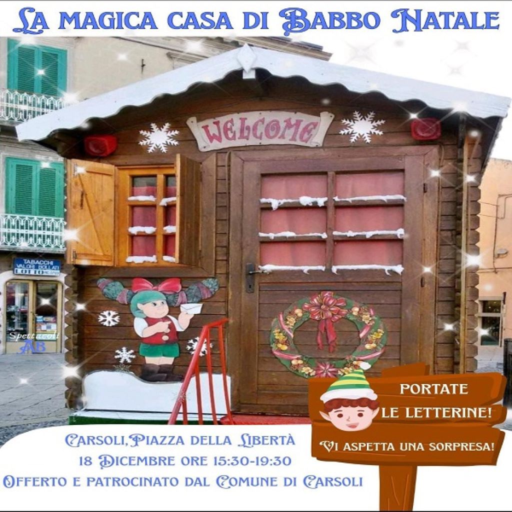Redazione- IL Natale ha una magia aurea, che distende le anime, che amplia il calore del cuore. Il Comune di Carsoli presenta LA MAGICA CASA DI BABBO NATALE, a Piazza della LIbertà, il 18 Dicembre, dalle 15,30 alle 19.30.