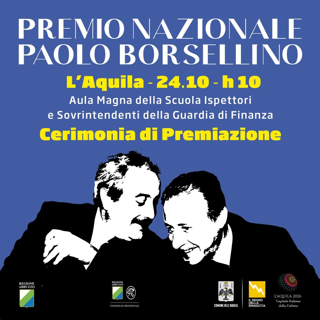 Redazione- DOMANI, 24 ottobre, alle ore 10.00, nell'aula magna della Scuola Ispettori e Sovrintendenti della Guardia di Finanza all'Aquila, il segretario generale Uil, PierPaolo Bombardieri, parteciperà alla cerimonia di premiazione della XXXIII edizione del Premio Nazionale Paolo Borsellino.