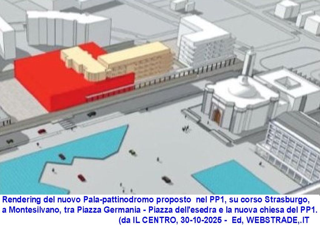 3. (Una Variazione-Non Variante decisa dalla giunta) Dall'altra sono legittime le osservazioni critiche sul metodo e sul luogo dell'intervento. Il PP1 è un piano particolareggiato da 7.000 abitanti, approvato nel 1996, realizzato per l'edilizia al 60 %, la cui efficacia è decaduta dopo 10 anni per la parte non realizzata, ma le cui prescrizioni urbanistiche sono vincolanti, fino all'approvazione di una nuova Variante. E sono prescrizioni urbanistiche vincolanti la destinazione d'uso del lotto, residenziale con piazza pubblica, cambiata in servizi sportivi specialistici, con decisione di giunta, senza portare la Variante in Consiglio Comunale. La nuova destinazione sportiva specialistica (palazzo per il pattinaggio a rotelle indoor), con effetti indotti sul traffico e l'accesso di massa in occasione di eventi, non è compatibile con la destinazione a piazza del PP1, la presenza della chiesa, ed il disegno del quartiere. Inoltre, è vincolante lo stesso disegno di piano del viale, centro - corso Strasburgo - mare, con alberi e portici, interrotti dal nuovo edificio privo di porticato continuo, e con sagoma occlusiva dell'altra prospettiva ortogonale di piano, dal fiume - al paseo D'Andrea - alla Piazza Germania, alla prospiciente Piazza Esedra. Infatti, il disegno urbano è ignorato dal progetto del pala-pattinodromo, che è a-topico, concepito altrove, finanziato ma rifiutato da un'altra città, e poi calato senza alcuna modifica sul PP1, per volere del sindaco e della giunta, senza confronto pubblico. Inoltre, è ancora più preoccupante la trattativa privata, con cui i proprietari delle aree hanno accettato di cedere prontamente le aree necessarie per realizzare il progetto, in una zona pregiata, spostando la cubatura residenziale lì prevista in un'altra zona, che non è data conoscere. Non si conoscono i termini dell'accordo, ed i vantaggi offerti in cambio della cessione. Cosa che rende pericolosamente torbida la decisione pubblica.